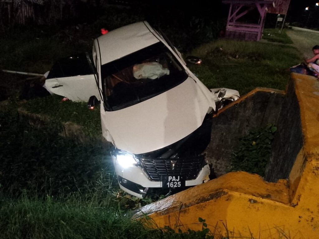 A late-night accident along the Berbice River Bridge Access Road at Palmyra, East Canje Berbice, left four people injured after the driver of a motor car lost control and crashed into a culvert.