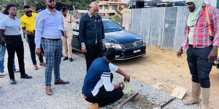 During his visit, Minister Edghill engaged with contractors and residents, reminding them that the deadline for all projects remains unchanged. While inspecting road works at Plegt Anker, he noted that four contracts were awarded for road upgrades, each covering 750 meters. Two of these projects have been completed, while work continues on the remaining sections. Another 750-meter segment has been prepared for paving, and an additional 1.5 kilometers is currently being developed. In total, the ongoing works in Plegt Anker are valued at nearly $400 million.