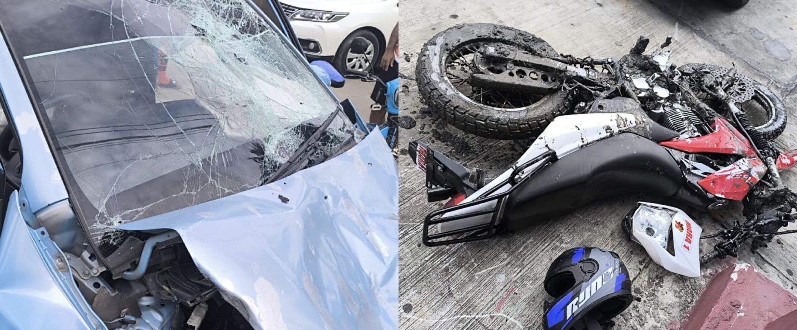 The motorcycle then collided head-on with motor car PAE 9749, which was proceeding east along the northern driving lane. As a result of the impact, motor car PAE 9749 lost control and collided with a utility pole on the northern grass parapet.