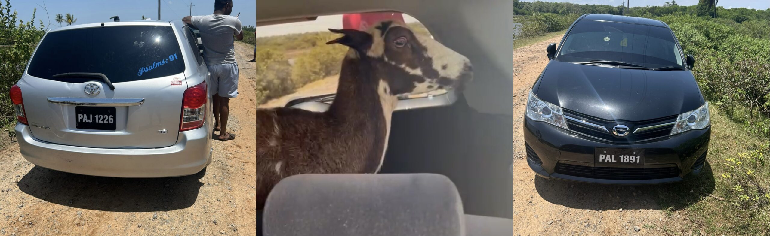 Police were called to Seawell Village, Corentyne, around 12:00 noon after residents confronted the drivers of two motorcars in connection with a stolen goat.