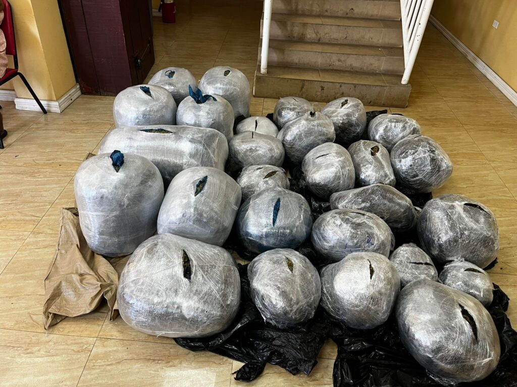 During a search of the vehicle, ranks discovered several brown salt bags and black garbage bags in the trunk, containing bulky parcels wrapped in transparent plastic. The parcels held leaves, seeds, and stems suspected to be cannabis.